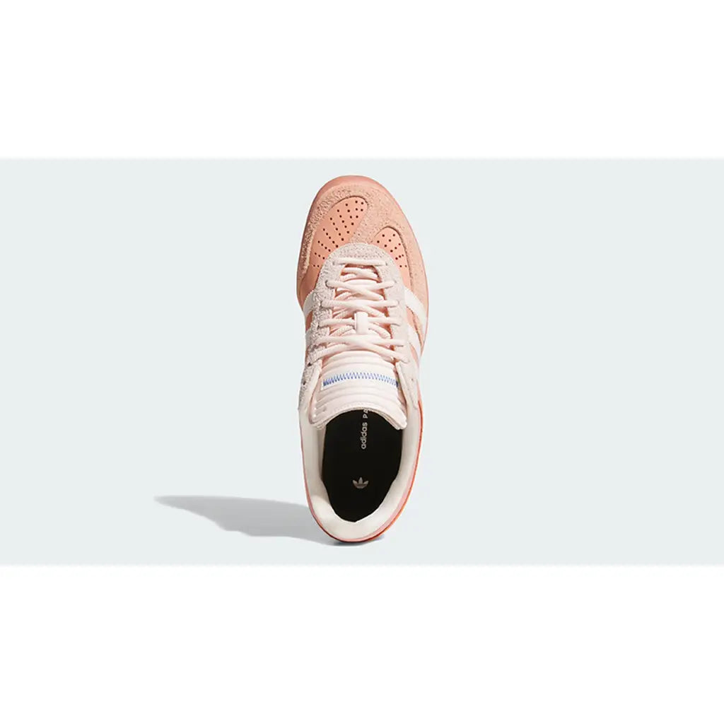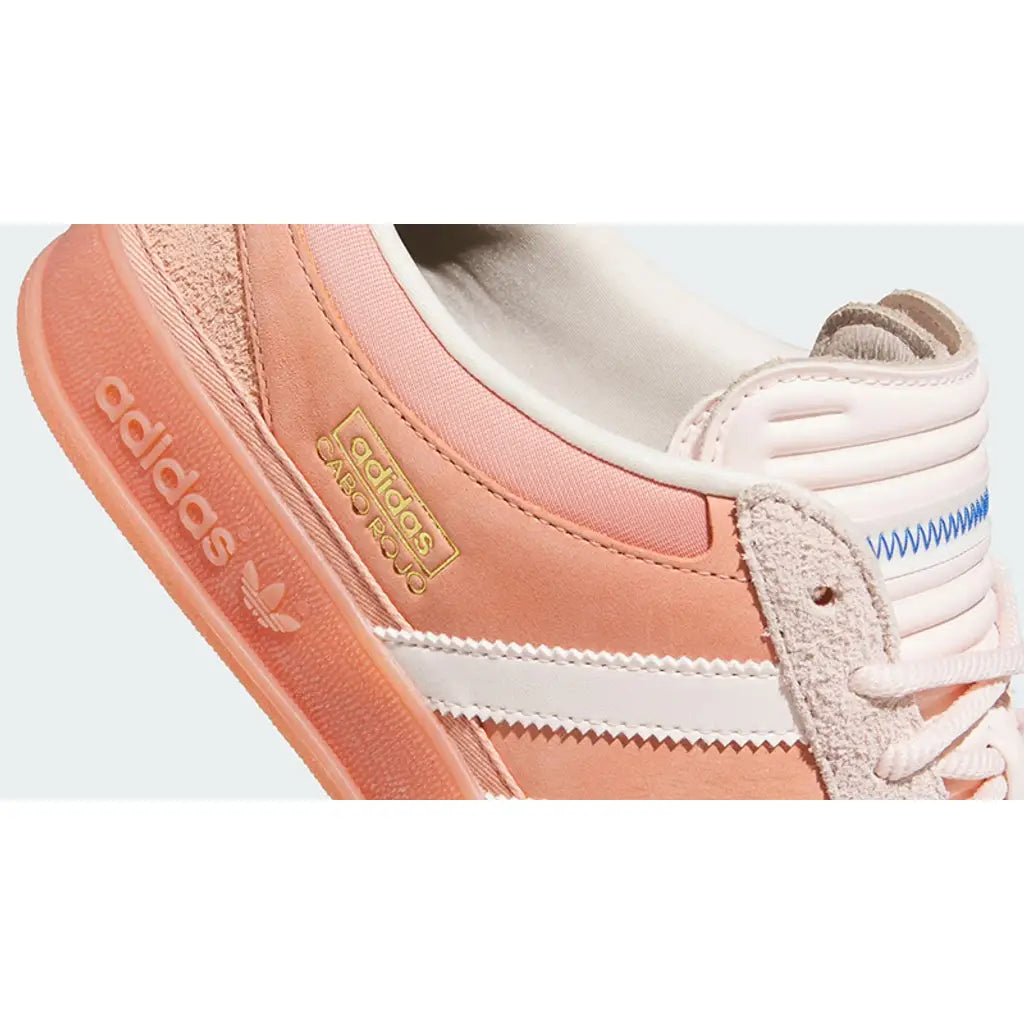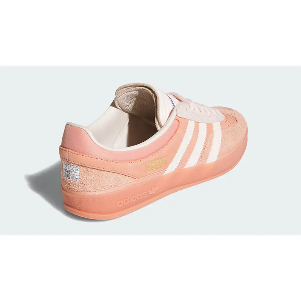 This limited-edition Gazelle Indoor features a vibrant orange suede upper with a misplaced T-toe overlay to form a distorted design. Beige 3-Stripes cover the sidewalls, complementing the gold foil branding on the lateral section. Offbeat details include the zig-zag stitching on the multilayered tongue and exposed product tag on the heel. The reinforced collar, inner lining, and back add support around the ankles, while the rope laces deliver a snug fit. An “ Gazelle PARA BAD BUNNY” graphic animates the sockliners as a nod to the partnership. The gum rubber outsole provides excellent traction on the pavement.